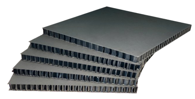 Honeycomb board uses a hexagonal core structure between paper liners.